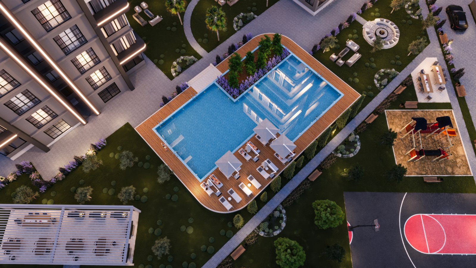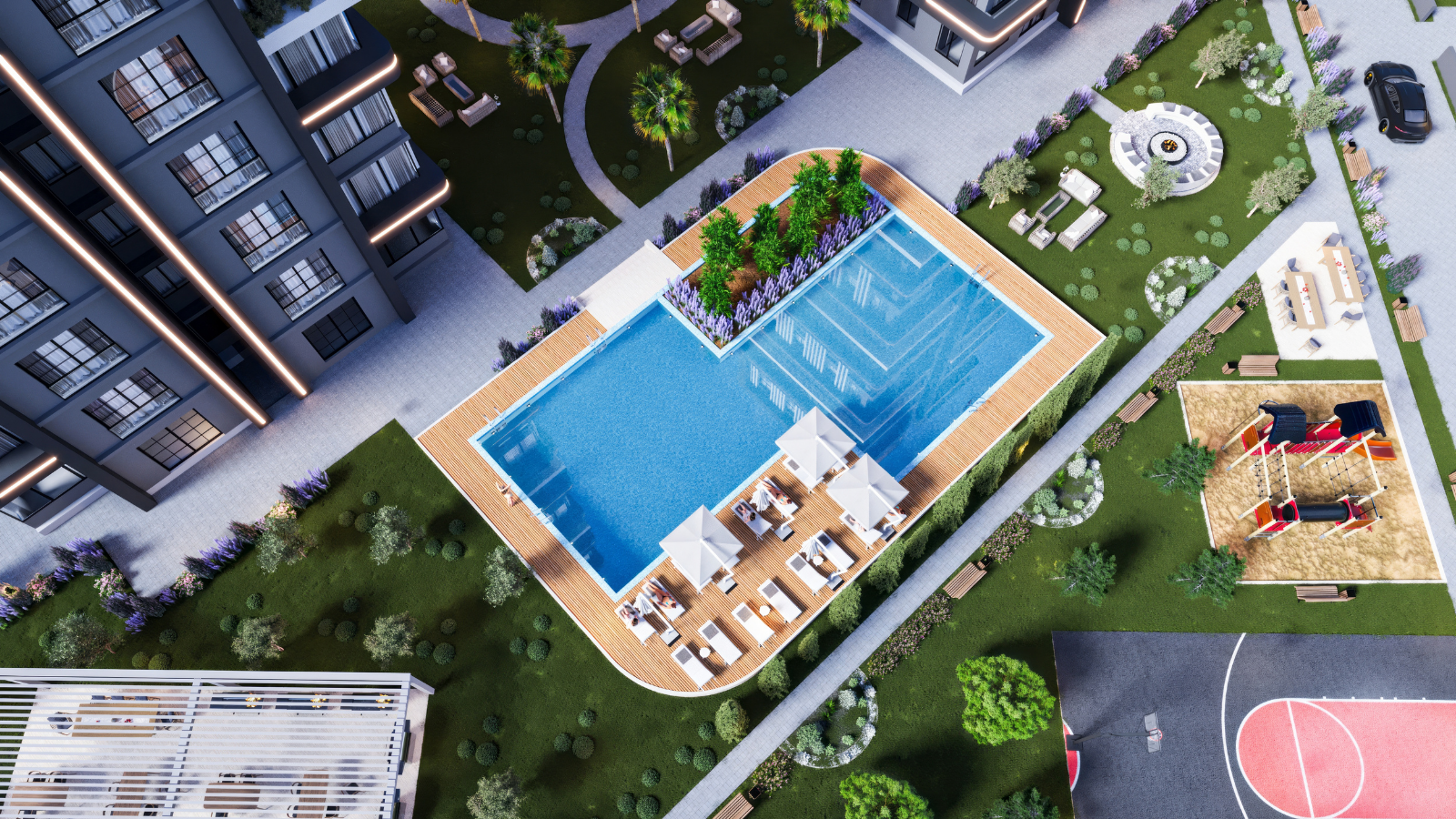 Özellikleri: Peyzaj, Geniş Otopark, Güvenlik Sistemi, Basketball Sahası, Kalorifer Sistemi |